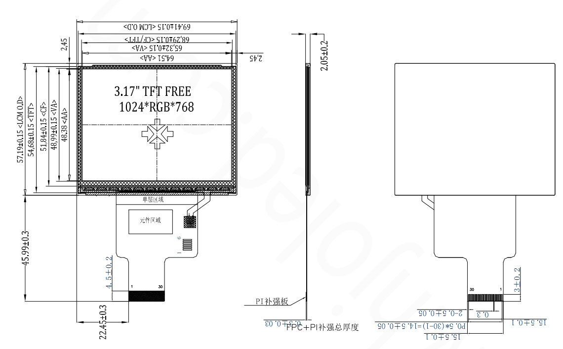 A HJ3170-01 3.17 hüvelykes IPS kijelző nagy felbontású 1024x768 egy 3,17 hüvelykes nagy felbontású TFT LCD interfész MIPI, 30pin standard dugó, a Driver IC JD9168, ultra-magas felbontású 1024*768, vízszintes képernyő, a kábel interfész tartalmaz 6pin kapacitási képernyőt, kényelmes, kényelmes formatervezéshez és örökbefogadáshoz. Ezt a terméket széles körben használják kivetítőkben, orvosi endoszkópokban, játékosokban, ipari hibadetektorokban és egyéb berendezésekben.