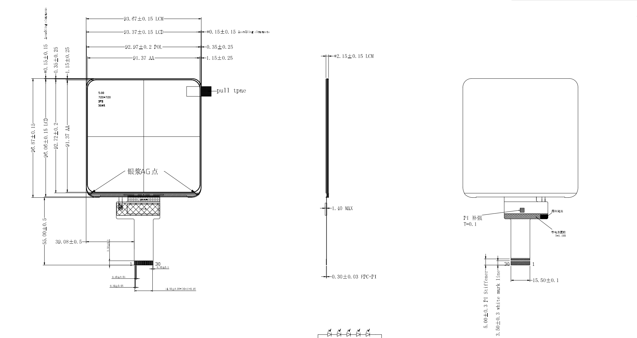 5 hüvelykes, négyzet alakú, 720*720-as felbontású LCD-képernyő, amely MIPI interfészen keresztül 2/3/4 csatornát támogat, JD9365 illesztőprogram IC-t használ, és az érintőképernyőhöz INCELL technológiát alkalmaz. Az 5 hüvelykes négyzet alakú képernyőmodul viszonylag vékony, és csak a fedőüvegre van szükség a teljes érintőképernyő-szerelvény kialakításához. Ezt a terméket széles körben használják elektronikus eszközökben. A Shenzhen Hongjia Technology mérnökei itt mutatják be az ügyfelek és a mérnökök kényelmét szolgálva.