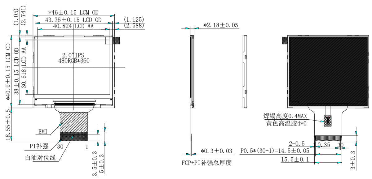 Hagyományos kijelzőként a2,0 hüvelykes TFT LCD képernyőaz ügyfelek általában portré módban használják 240*320 felbontással. A nagyobb felbontású követelményekhez Liu úr, a Shenzhen Hongjia Technology mérnöke 480*360-as fekvő képernyőt javasol. Ez a képernyő támogatja a MIPI és RGB interfészt, az ST7701 illesztőprogram IC-t használja, támogatja az 1/2 csatornás MIPI interfészt, a 30 tűs szabványos csatlakozót, az IPS teljes látószögét, és támogatja az ultraszéles, -30 és 80 Celsius fok közötti üzemi hőmérsékleti tartományt. A fényerő elérheti a 600-1000 lument, így még napfényben is tiszta láthatóságot biztosít.